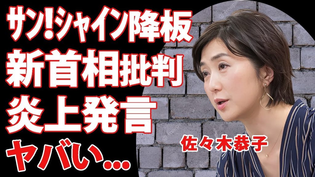 佐々木恭子の”サン!シャイン”復帰でフジテレビが完全”犬”化 新首相批判発言の過激さにネット騒然…メディア忖度止まらず、再びテレビ追放か
